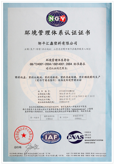環境管理體系認證證書